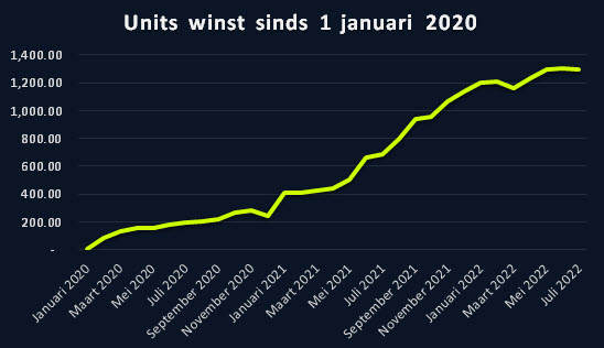 In juli werden er 202 tips gegeven met gemiddelde odds van 2,65. Er viel een beperkt verlies van 9,71 units te noteren, wat overeenstemt met een return on investment van -2,44%. De teller van de totale winst sinds 1 januari 2020 staat nu op 1297,07 units.