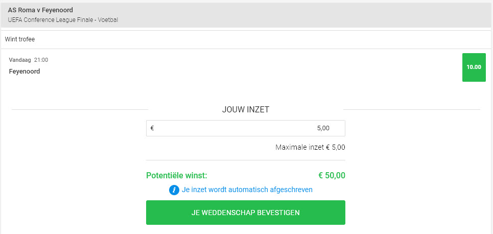 Woensdagavond staat Rotterdam samen met een groot deel van Nederland in vuur en vlam. Feyenoord neemt het om 21 uur namelijk op tegen AS Roma in de finale van de Conference League. Na een ongekend seizoen met prachtige overwinningen in binnen- en buitenland, staan de Rotterdammers voor het eerst sinds 2002 weer in de finale van een Europees toernooi. Ook in bookmakerland leeft de ‘jongste’ Cup van Europa enorm en dat zorgt voor heel wat mooie opportuniteiten.