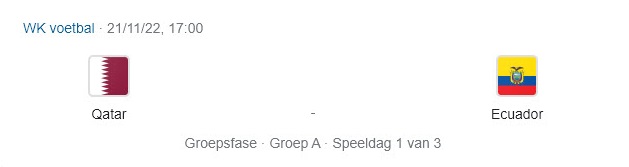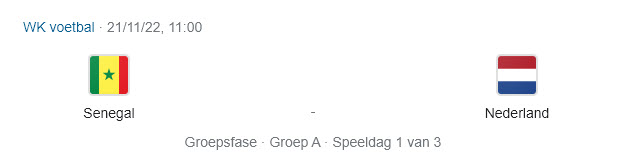 Nederland is in een groep geloot met thuisland Qatar, het Zuid-Amerikaanse Ecuador en Afrika Cup winnaar Senegal. Nederland speelt de officieuze openingswedstrijd op 21 november om 11:00 tegen Senegal en treft dus meteen een taaie tegenstander in het Al Thumama Stadium. Later op de dag werken Qatar en Ecuador de officiële openingswedstrijd om 17:00 af in het Al Khor Stadium.