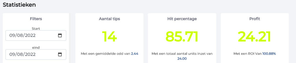 Voor onze Betman Tippers gaat 9 augustus 2022 tot dusver de geschiedenisboeken in als de derde beste dag van dit jaar. Er werden 14 tips gegeven die in totaal zorgden voor een knappe winst van 24,21 units. Qua ROI strandt deze dolle dinsdag met 100,88% op de vierde plaats.