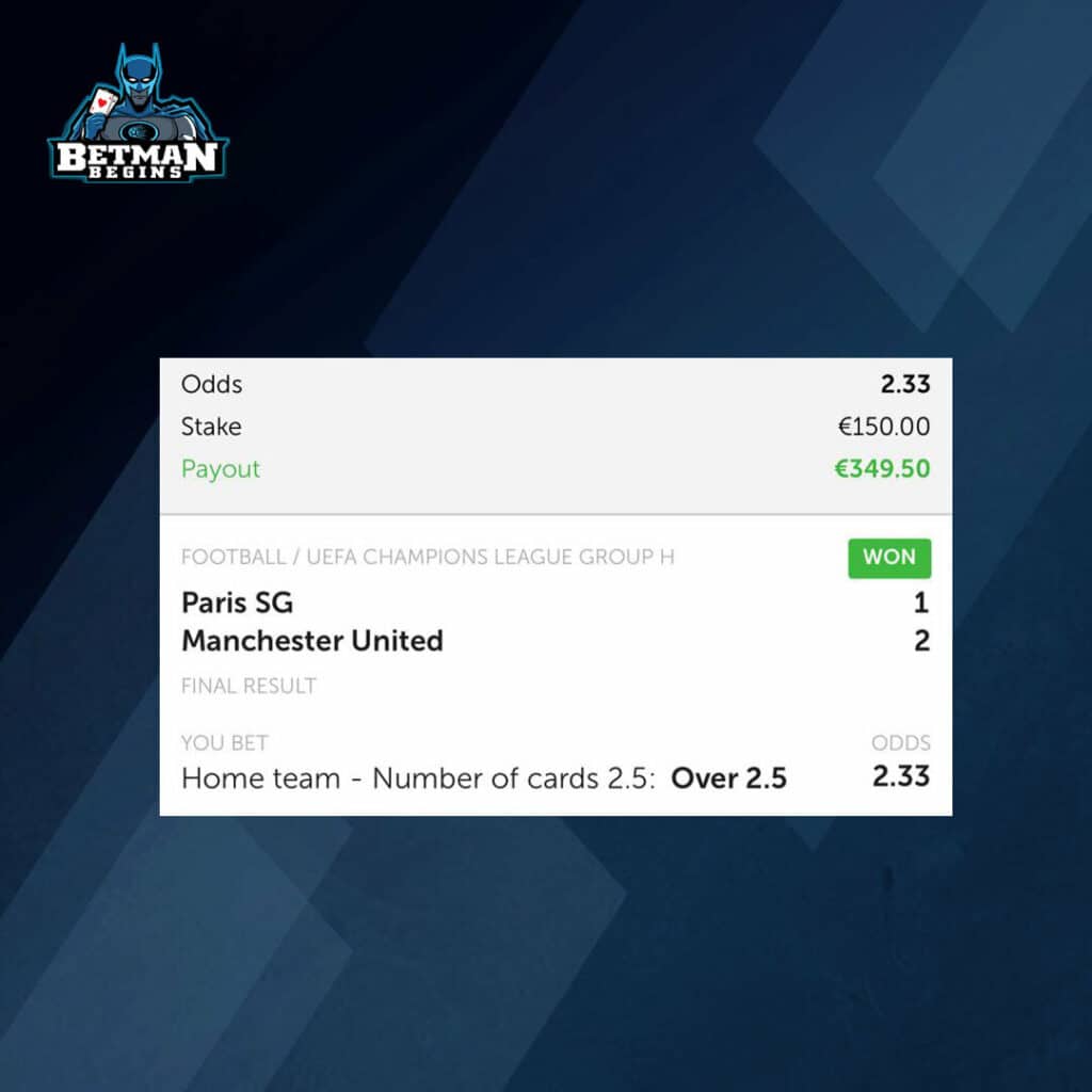We eindigden de avond met een mooie winst. Volgers die €20 op elke tip hadden ingezet, hadden €156,60 winst gemaakt. Volg zeker onze Betmanbegins Telegram - of Facebook groep om op de hoogte te blijven van alle tips!