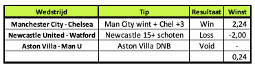 Het laatste artikel dateert alweer van enkele weken geleden. Maar hierbij de resultaten. In het laatste artikel zijn we, mede door een ontketende Coutinho, goed weggekomen bij Manchester United. Maar hadden we wat pech qua schoten van Newcastle. Al met al een ‘winst’ van 0.24 units.