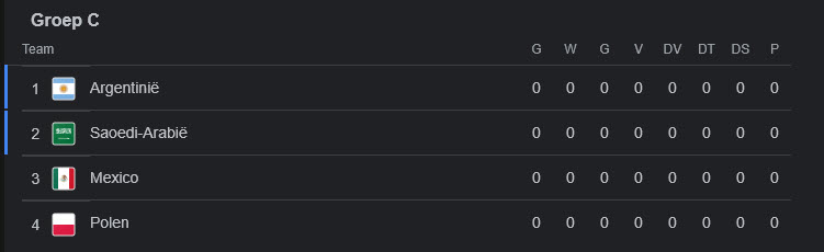 In groepen B, C en G vinden we uitgesproken favorieten op groepswinst met respectievelijk Engeland (1,30), Argentinië (1,48) en Brazilië (1,25). Engeland moet voorbij Wales, de VS en Iran. Argentinië neemt het dan weer op tegen Mexico, Polen en Saoedi-Arabië. Brazilië moet op zijn beurt komaf maken met Zwitserland, Servië en Kameroen. Appeltje-eitje, toch? De tweede plekken gaan in groep B tussen Wales en de VS, in groep C tussen Mexico en Polen en in groep G zal het tussen Zwitserland en Servië gaan.
