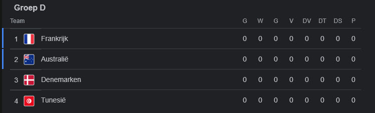 Dan rest ons enkel nog groepen D en F. In groep D lijken Frankrijk (1,42) en Denemarken (3,75) zeker van de achtste finales aangezien Tunesië en Australië over heel wat minder kwaliteit beschikken. Hun spelers hebben een pak minder ervaring op het hoogste niveau in vergelijking met de Denen en Fransen. Voor groep F heeft België (1,55) de beste papieren, al zitten ze wel in een groep met echte outsiders. Kroatië, Marokko en Canada zijn namelijk drie ploegen waar je niet zomaar overheen walst. Groep F zou dus wel eens de leukste groepsfase van de acht kunnen worden.
