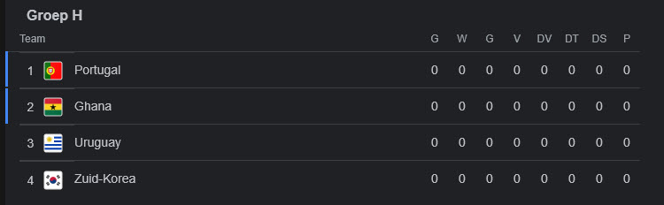 In groep H vinden we eenzelfde scenario tussen Portugal (1,80) en Uruguay (2,75). Voor de eerste plek mogen ze het onder elkaar uitvechten, maar met Ghana en Zuid-Korea lijkt ook hun ticket naar de volgende ronde verzekerd.